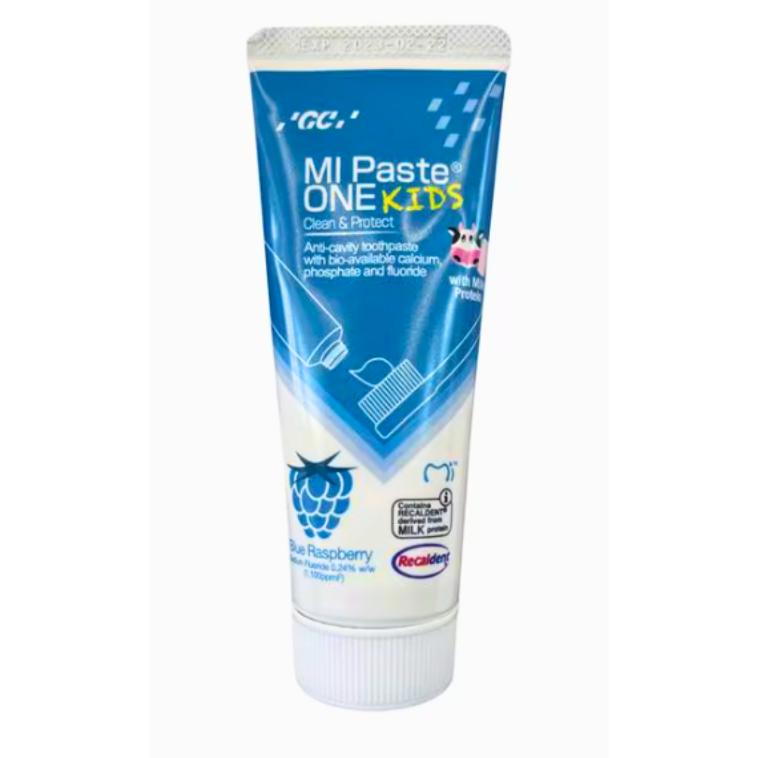 MI Paste ONE Kids ofrece los beneficios clínicos de la línea MI Paste, adaptados para los más pequeños. Su fórmula contiene Recaldent™ (CPP-ACP) y flúor para fortalecer el esmalte infantil, prevenir la aparición de caries y reducir la sensibilidad dental desde edades tempranas.